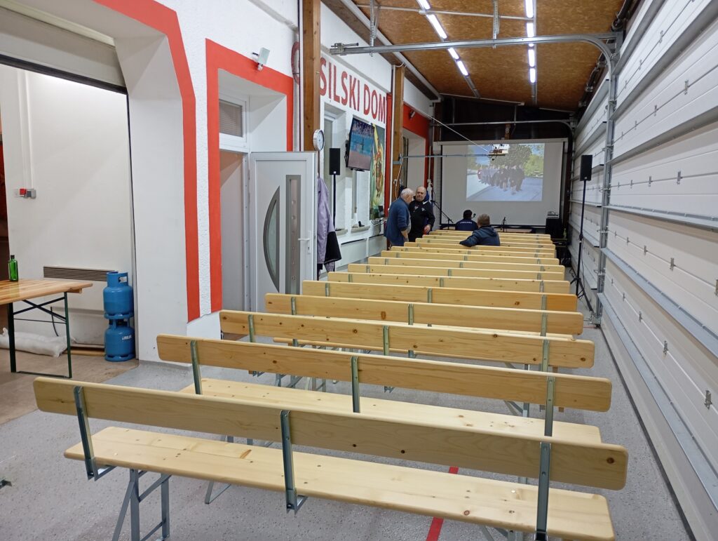 Občni zbor društva se že nekaj let izvaja v nadstrešku in garažnih prostorih društva. Da toplota ne uhaja med garažnimi prostori, smo si zamislili zaščitne zavese.